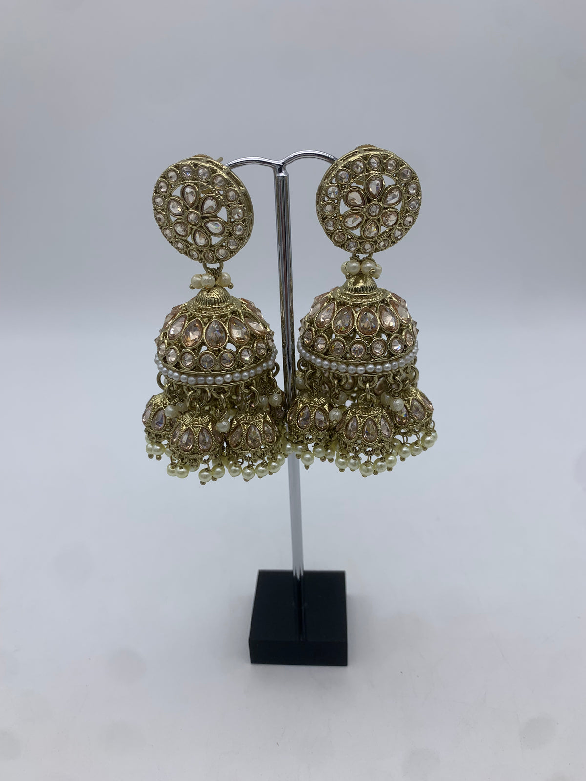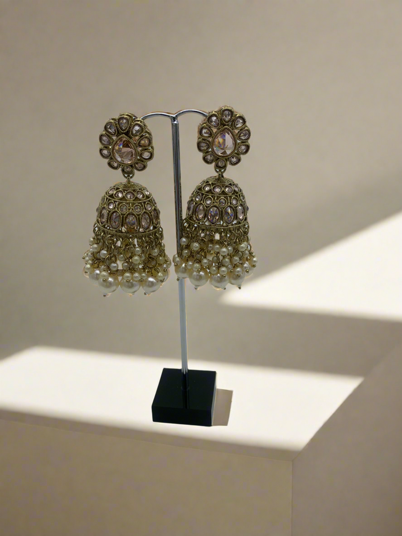 Am 007 Gold and white jhumka earrings