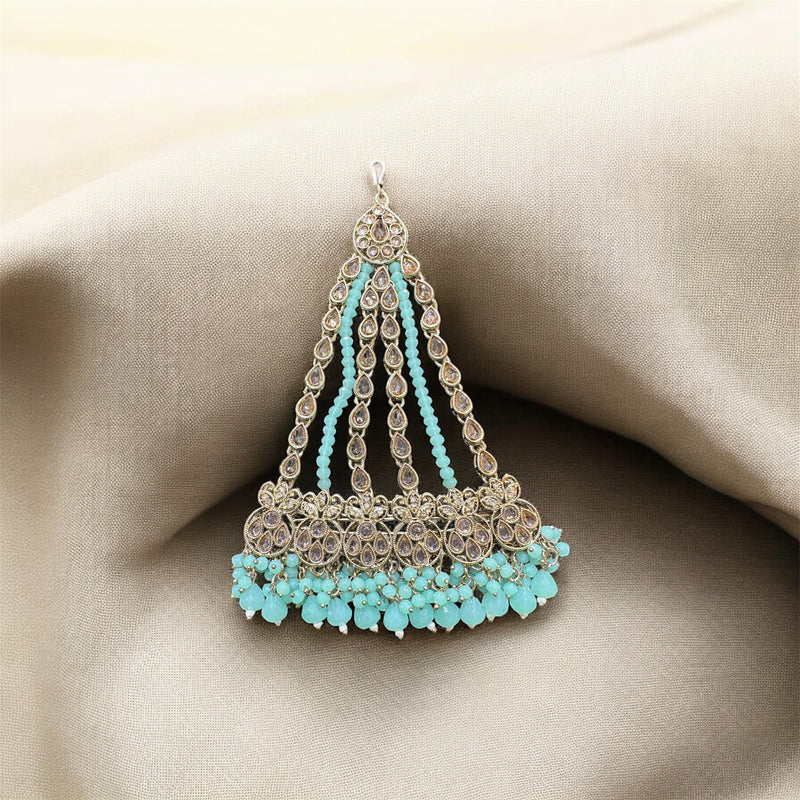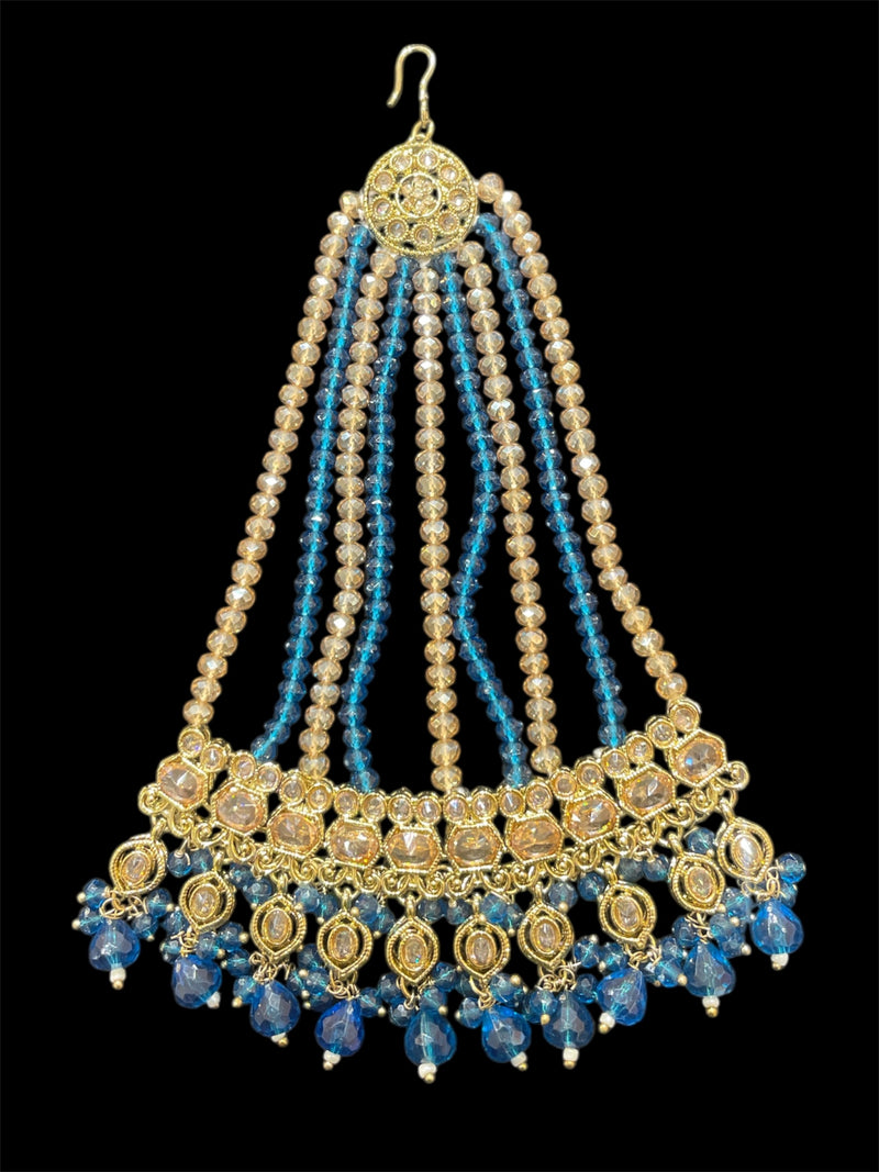 AA55 Gold and Teal/Blue polki jhumar/pasa