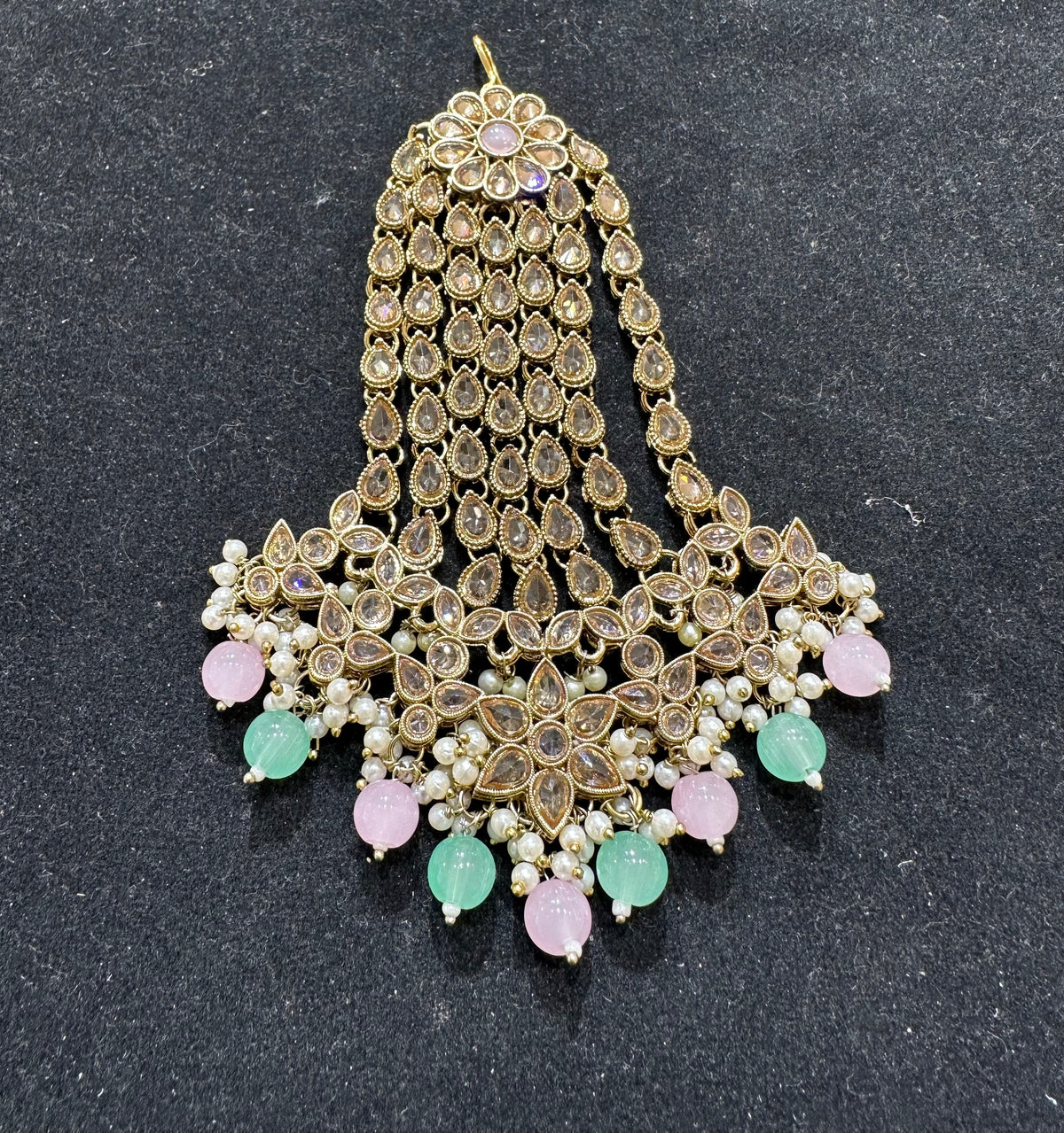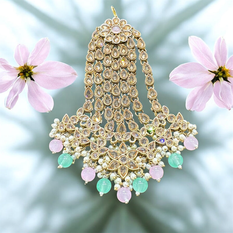 AA48 Full gold colour jhumar with mint and light pink beads