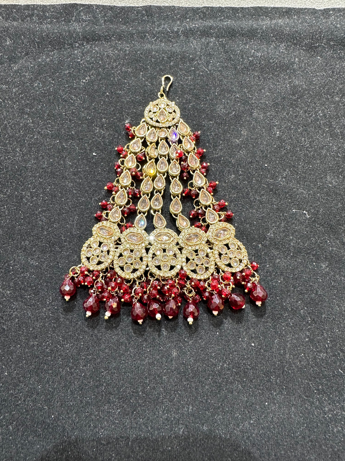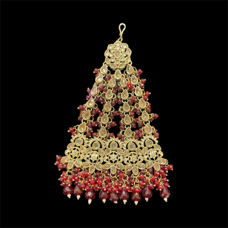 PA37 Maroon Jhumar with full gold polki stones