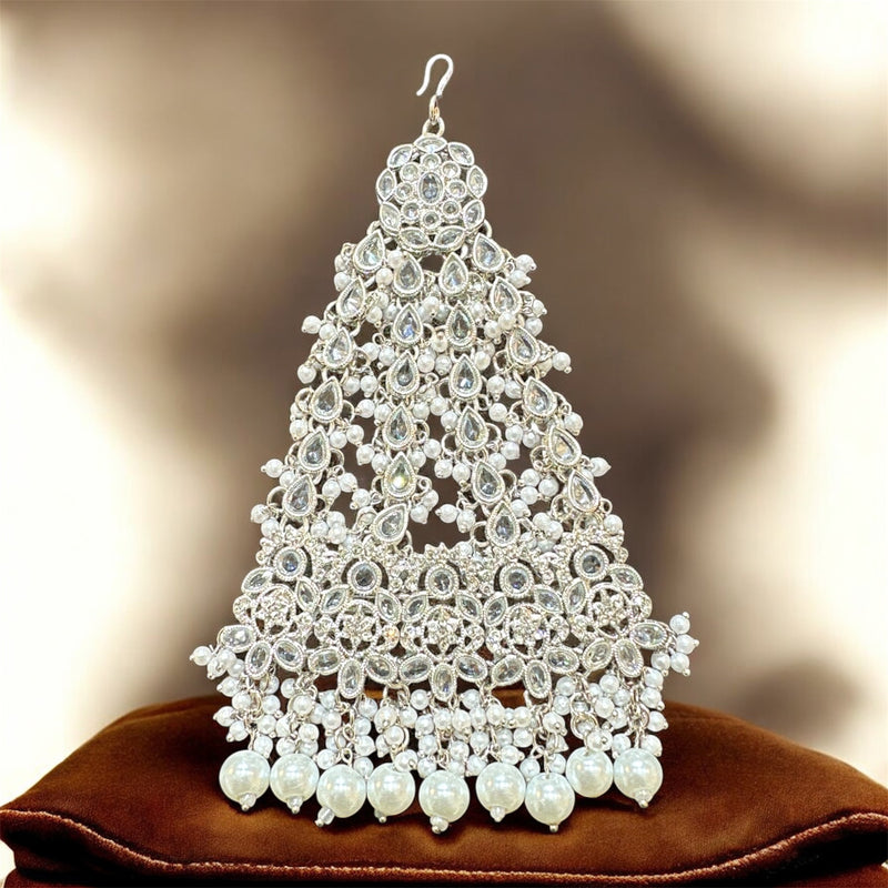AA53 full silver jhumar with white beads